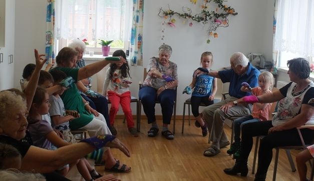 Spielen, Basteln, Spaziergänge, Bewegungsübungen, Gedächtnistraining, Geburtstagsfeiern und alle Feste im Jahreskreis mit den BewohnerInnen, gemeinsames Kochen und Backen, Treffen zwischen Kindergärten und BewohnerInnen – entweder im Betreuten Wohnen oder im Kindergarten selbst.