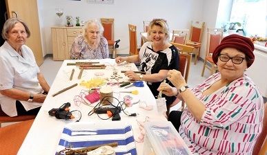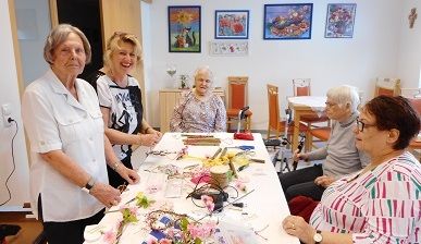 Bewegungsübungen, Spaziergänge, Walken, Basteln, Gemeinsames Kochen und Backen, Ausflüge 2x jährlich, Abwesenheitsdienst, Beratung und Planung bei Veranstaltungen, Teilnahme am öffentlichen Leben wie Theaterbesuche, Eis essen gehen, Marktbesuche, ein Miteinander pflegen um der Vereinsamung entgegenzuwirken, Partys, Livemusik mit Tanz.