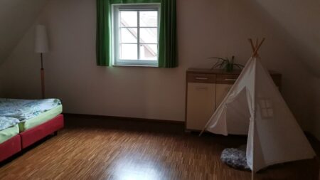 - Garten/ Spielplatz: Wir haben einen eigenen Garten mit Spielplatz. Auch ein öffentlicher Spielplatz ist ca. zehn Gehminuten entfernt.