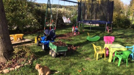 Wir haben einen großen Garten, wo wir gerne spielen, toben und im Naschgarten auf Entdeckungsreise gehen …