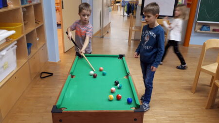 Unsere beiden Gruppen sind räumlich etwas entfernt und daher ist ein Schwerpunkt unserer Einrichtung die offene Arbeit im Hort. Jedes Kind hat die Möglichkeit sich im Freispiel täglich zu entscheiden, in welchem Raum es seine Zeit verbringen möchte. So bleiben die Spiel- und Freizeitangebote abwechslungsreich und interessant für alle Kinder.