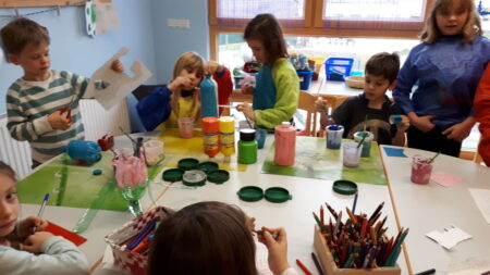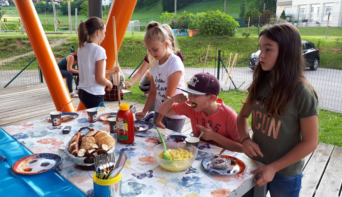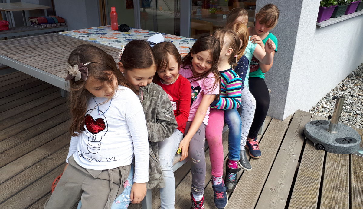 Sehr beliebt bei den Kindern ist die wöchentliche „Tratschrunde“, bei der jedes Kind sein Lieblingsthema aussuchen kann und dieses dann in der Gruppe besprochen und bearbeitet wird. Der Garten und der Turnsaal der Volkschule ermöglichen den Kindern ihrem Drang nach Bewegung ausreichend nachzukommen und bieten im Sommer Platz für ein kleines Schwimmbecken und eine nasse Abkühlung.