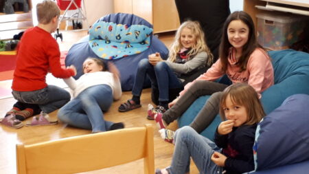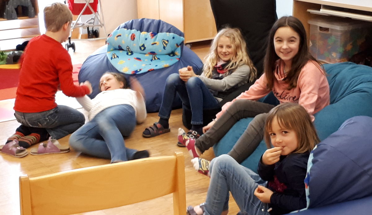 Bei den Hausübungen geben wir unseren Kindern die Zeit, die sie benötigen, um die an sie gestellten Anforderungen zu erledigen. Die Kinder werden dabei optimal unterstützt, beraten und individuell gefördert. Es stehen zahlreiche Lernhilfen zur Verfügung und die Kinder lernen voneinander. Die älteren Kinder stehen den jüngeren dabei als Berater gerne zur Seite und erledigen zum Beispiel Leseaufgaben oder Ansagen mit ihnen.
