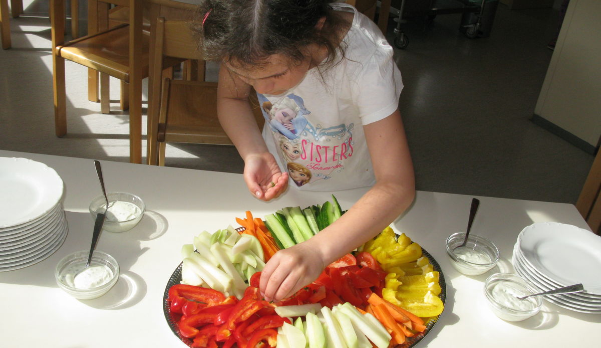 Am Nachmittag laden wir die Kinder ein, an einer gemeinsamen, gesunden Jause teilzunehmen.