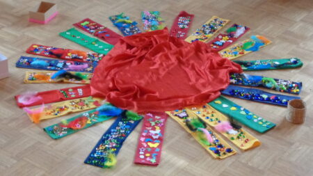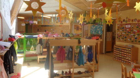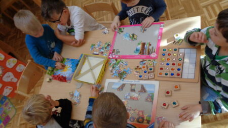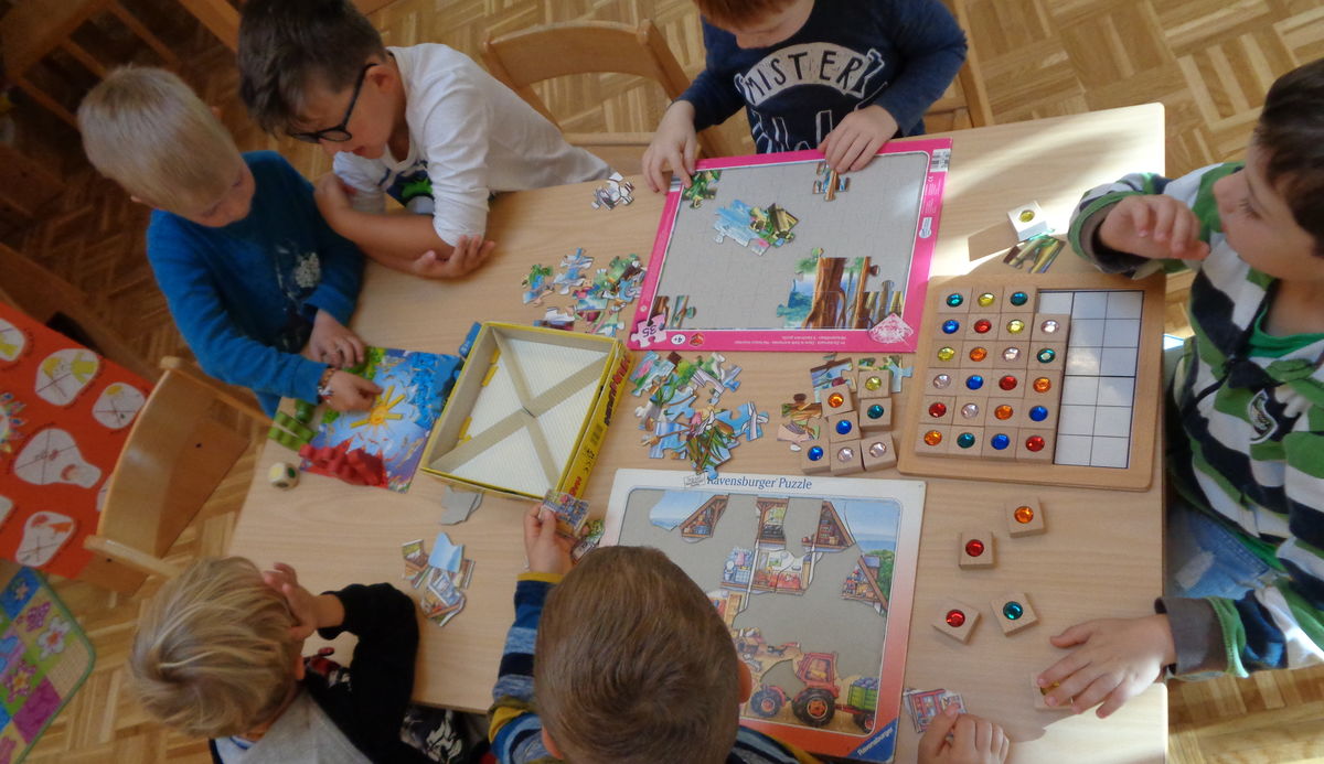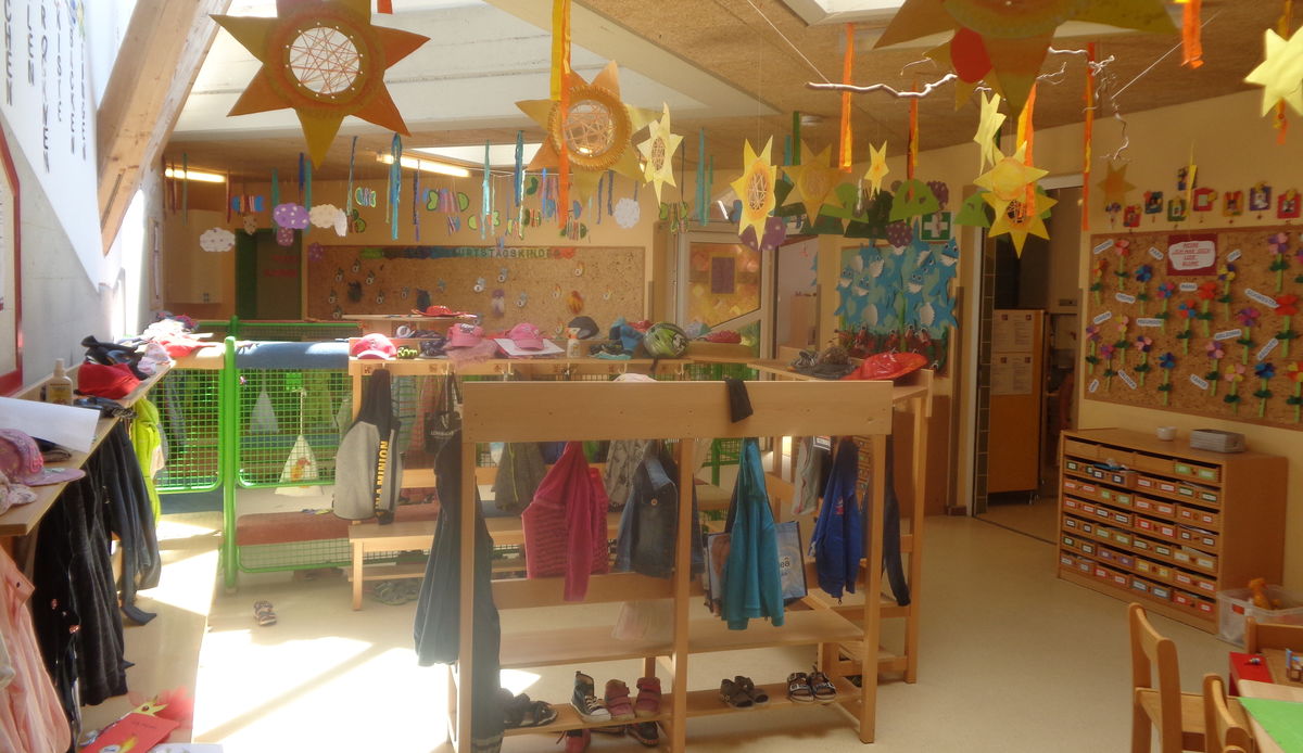 Die Kinder können sich je nach Bedürfnis und Interesse dorthin begeben, wo sie das tun können, was für sie gerade von Bedeutung ist. Deshalb bilden sich auch außerhalb der Gruppenräume immer wieder kleinere Gruppen. In dieser “Gruppenbildung” übernehmen die Kinder Verantwortung und stärken somit ihr Selbstbewusstsein, Selbstbestimmtheit und ihre Entscheidungsfähigkeit.