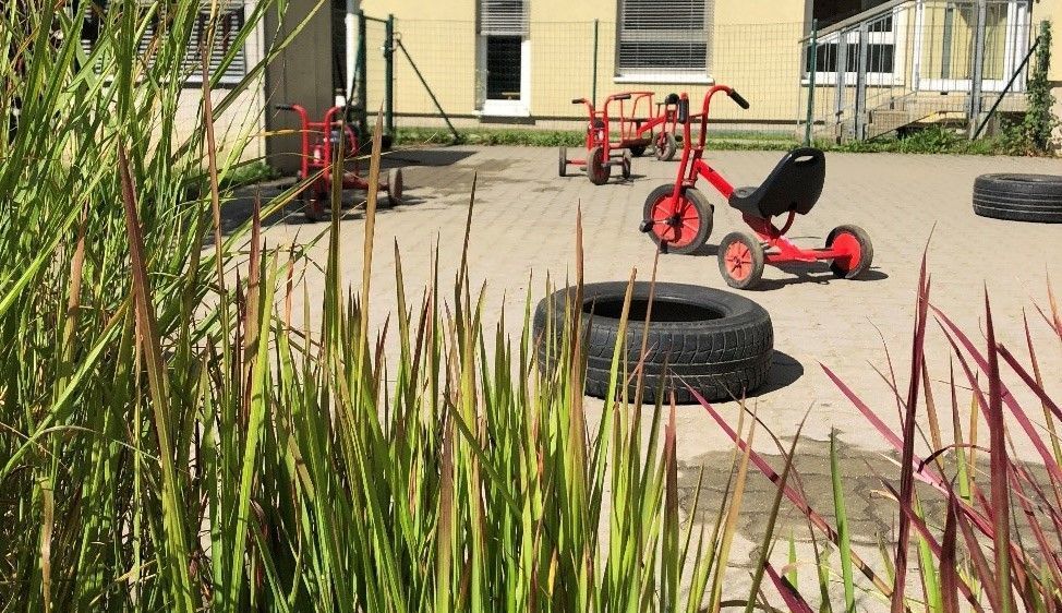 Unser Kindergarten bietet viele Grünflächen. In unserem Rollergarten, dem Spielplatz und im großen Garten, den wir gemeinsam mit der benachbarten Kinderkrippe nützen, haben die Kinder viele Möglichkeiten zum Spielen und Austoben. Zusätzlich zu den beiden Gruppenräumen stehen den Kindern außerdem ein gut ausgestatteter Turnsaal und ein Multifunktionsraum für Aktivitäten in der Kleingruppe oder als Rückzugsmöglichkeit zur Verfügung.
