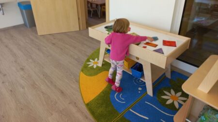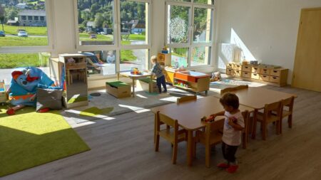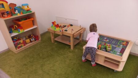 Die Entwicklung des ,,ICHS“, das ,,freie Spiel“, viel Bewegung, eine ,,gesunde Jause“ stehen bei unseren Kleinsten im Mittelpunkt. Die Krippenkinder sollen sich wohlfühlen und dürfen ihr eigenes ICH entfalten. Viel Platz für Bewegung gibt es im eigenen Bewegungsraum, im Garten und am Vorhof. Die Eingewöhnung findet gemeinsam mit den Eltern statt und kann/darf bis zu 3 Wochen dauern.
