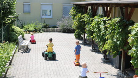 - Durch den regelmäßigen Kontakt mit dem benachbarten Kindergarten wird den Kindern ein harmonischer Übergang ermöglicht.
