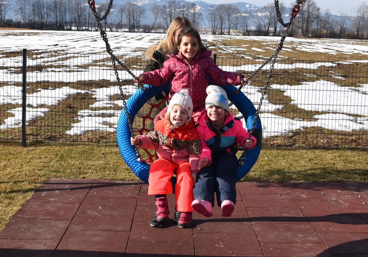Unsere Einrichtung liegt sehr zentral in Spielberg. Von jedem Raum aus haben wir freien Blick ins Grüne. In unserem Garten haben die Kinder viel Platz und ausreichend Möglichkeiten zum Laufen, Sandspielen, Schaukeln, Rutschen und Entdecken. Von jedem Punkt aus haben wir einen wunderbaren Blick auf den Zirbitzkogel.