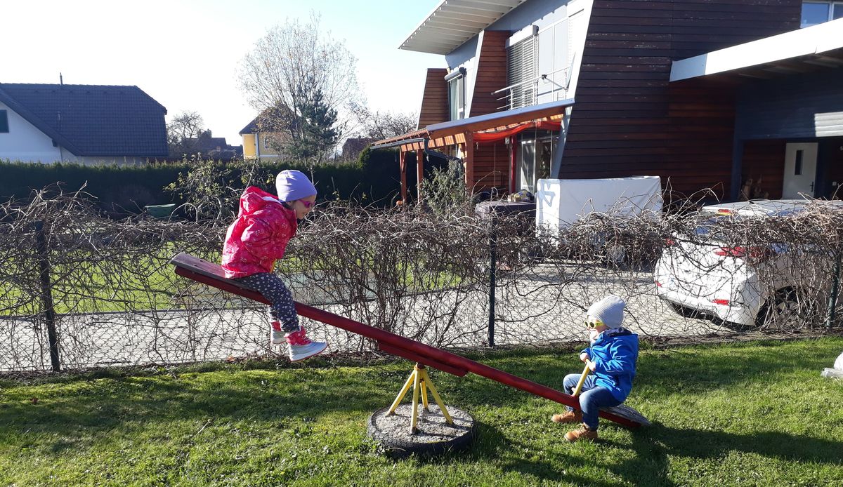 - Garten / Spielplatz: Wiese beim Haus, Spielplatz ca. 10 min entfernt