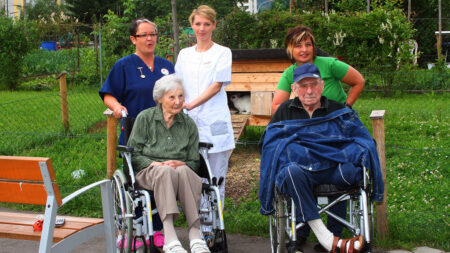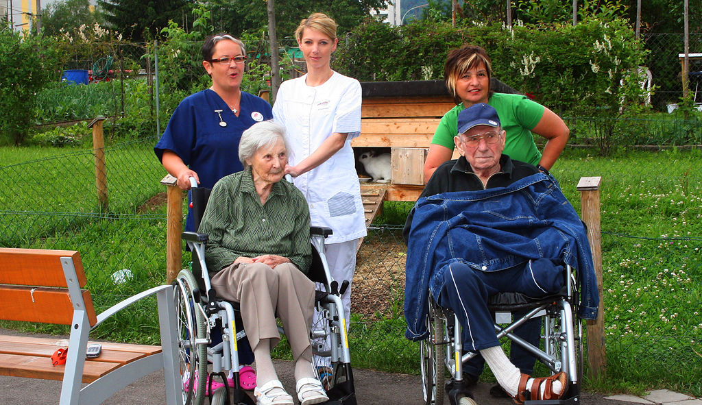 Unsere liebevoll gepflegte Gartenanlage bietet viele schattige Sitzgelegenheiten, damit unsere Senior:innen frische Luft schnappen, auf den Sitzbänken plaudern und die Natur genießen können. Dank eines Hochbeets haben die Bewohner:innen die Möglichkeit, sich auch weiterhin der Gartenarbeit zu widmen. Die beiden Zwergziegen Max und Moritz freuen sich immer über Besuch und ausgiebige Streicheleinheiten.