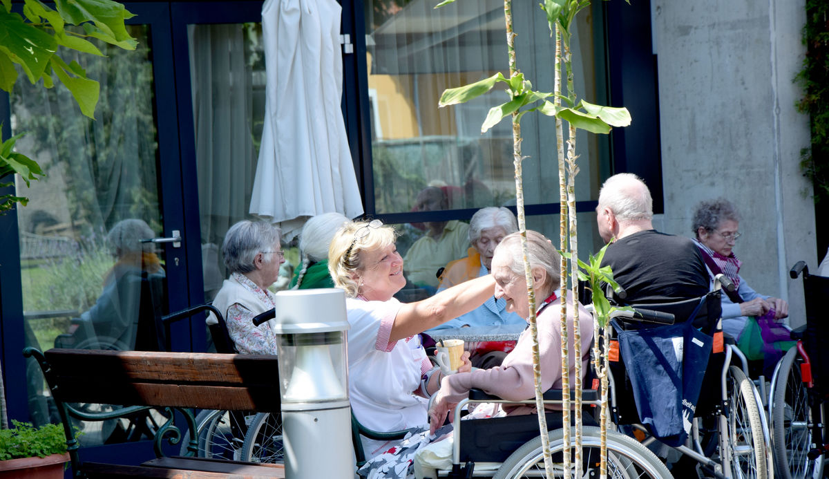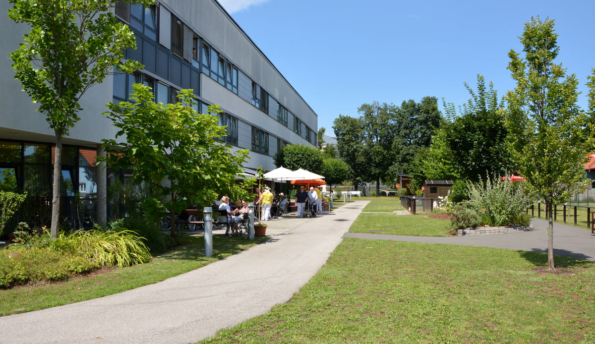 Im Parterre sind der gemeinsame Speisesaal und die Cafeteria untergebracht. Wir haben auch eine sehr liebevoll gepflegte Gartenanlage mit einer Laube und vielen Sitzgelegenheiten, damit die SeniorInnen frische Luft schnappen, plaudern und die Natur genießen können.