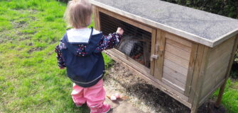 - Haustiere: eine Katze, zwei Meerschweinchen im Garten